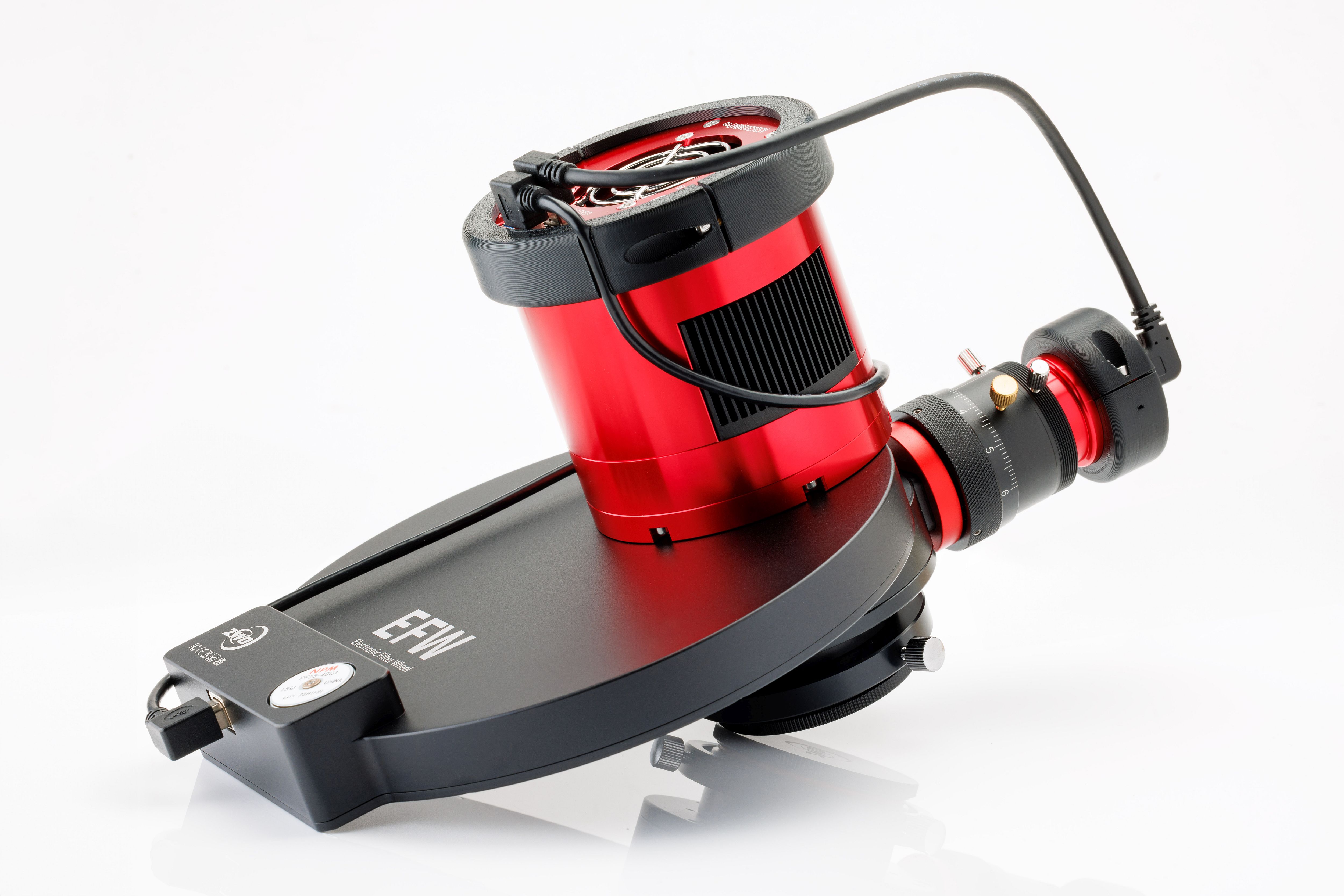 Über den USB-Hub der Kamera lassen sich beispielsweise die Guidingkamera oder das Filterrad anschließen. Damit reduziert sich die Zahl der abgehenden Kabel deutlich. Von der Kamera führt am Ende nur noch ein einziges USB-Kabel zur Steuerungseinheit, anstatt zwei oder drei separater Leitungen. Das vereinfacht die Kabelführung erheblich, spart Gewicht und minimiert bewegliche Kabel im sensiblen Bereich des Systems.