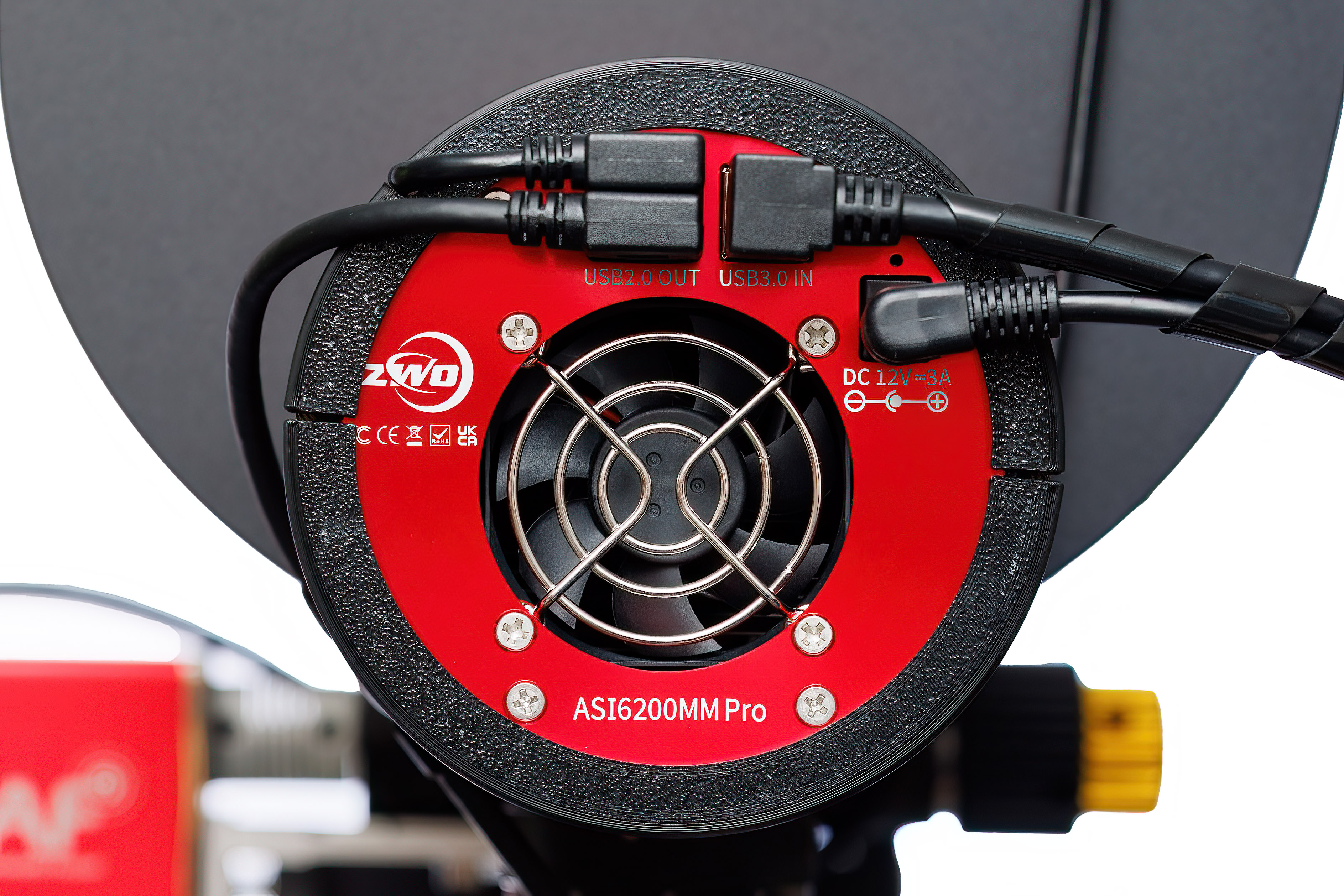 Ein weiterer zentraler Bestandteil meines Kabelmanagements ist der integrierte USB-Hub moderner Astrokameras. Viele Kameras, unter anderem von ZWO, bieten die Möglichkeit, weitere Geräte direkt an der Hauptkamera anzuschließen. Dieses Feature nutze ich sehr bewusst, da es einen enormen Einfluss auf die Anzahl und Führung der Kabel hat. Statt mehrere USB-Leitungen vom Teleskop wegzuführen, werden zusätzliche Komponenten direkt an der Kamera zusammengeführt.