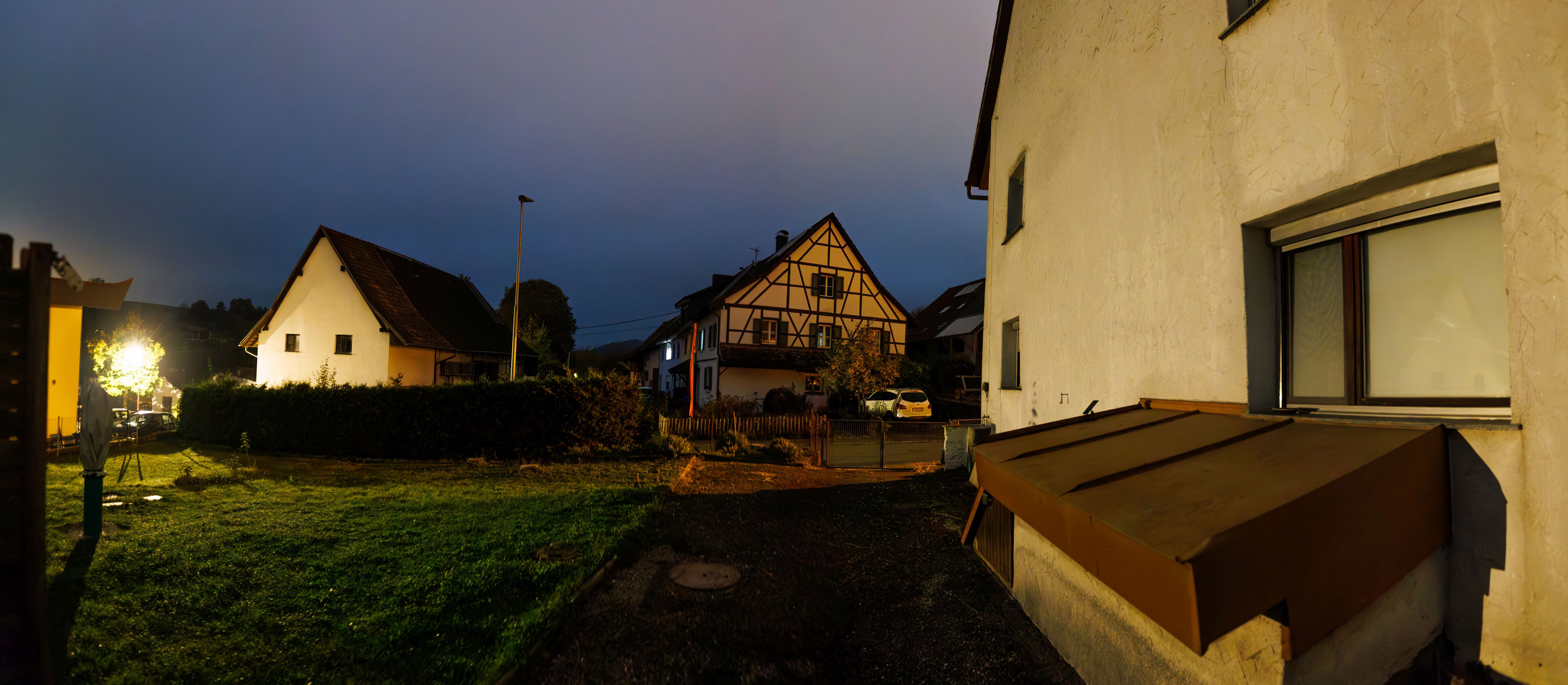 Hier sieht man auch ganz gut, wie das helle Licht die gesamte Fassade von meinem Haus erleuchtet.