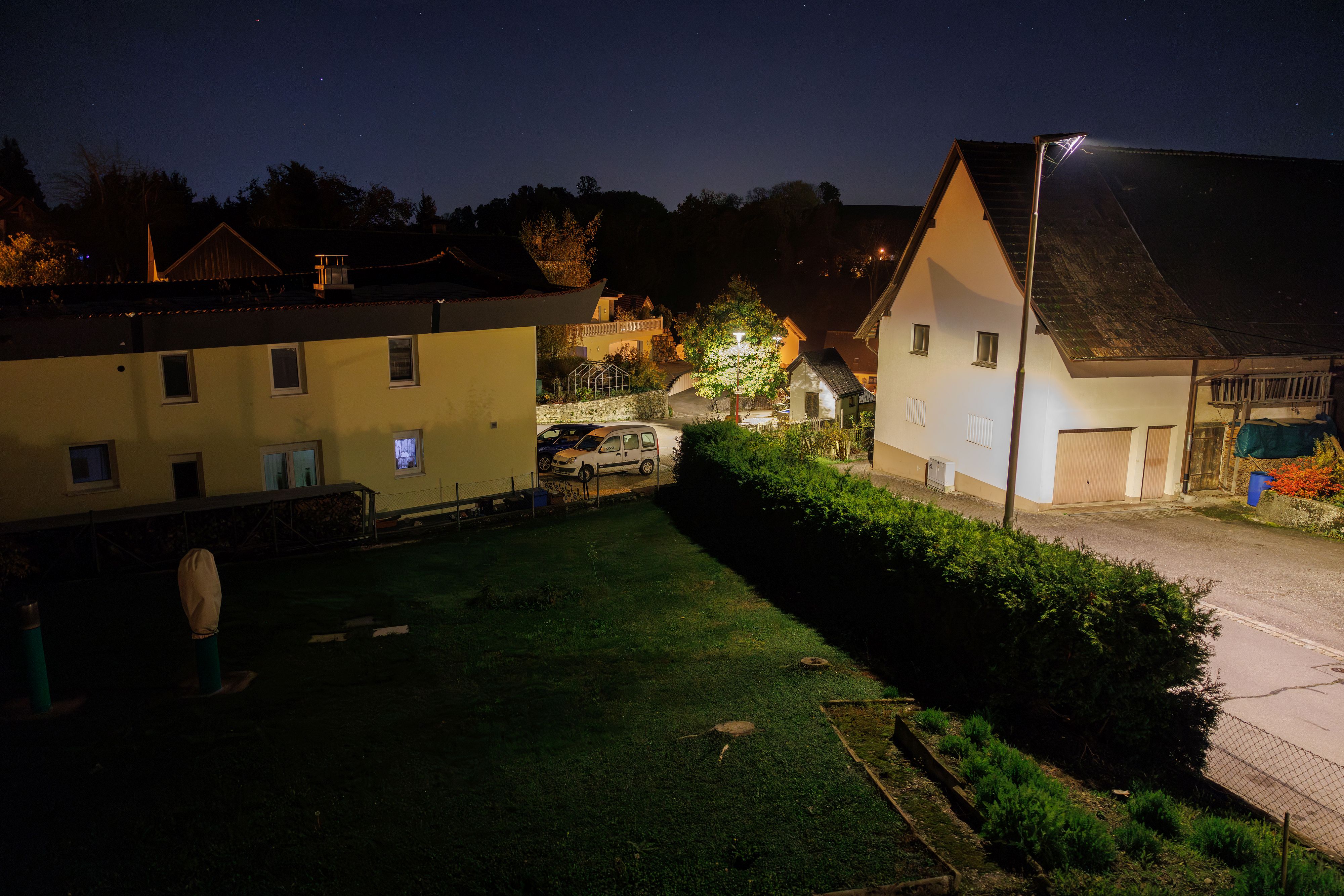 An dieser Stelle möchte ich der Gemeinde ausdrücklich danken, dass sie auf meine Anliegen eingegangen ist und das Problem auf ein einigermaßen akzeptables Maß reduzieren konnte. Der Kompromiss ergibt unter anderem auch dadurch, dass diese erwähnte Straßenlampe im Bereich gegen Mitternacht auch automatisch abschaltet.
