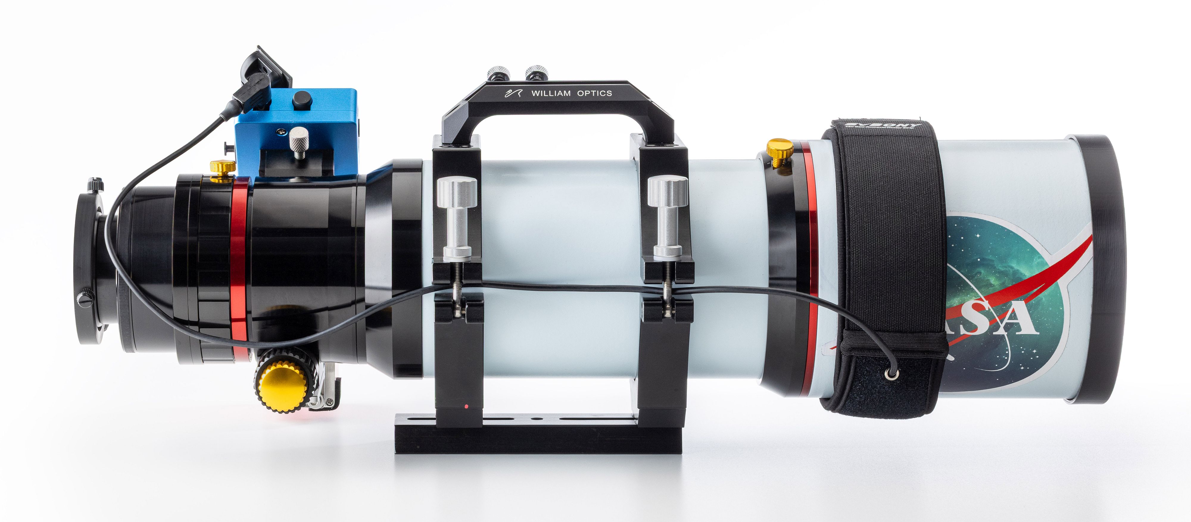 Ein entscheidender Baustein für kurze Kabelwege ist die Platzierung der Steuerung direkt am Teleskop. In meinem Fall kommt eine ASIAIR zum Einsatz, bei anderen Setups kann das ein Mini-Computer oder eine vergleichbare Steuereinheit sein. Alle relevanten Komponenten wie Kamera, Guidekamera, Fokussierer oder Filterrad werden direkt am Tubus angebunden. Dadurch bleiben die Kabellängen minimal und es gibt innerhalb des bewegten Systems kaum frei hängende Leitungen. Über die beweglichen Achsen der Montierung müssen letztlich nur noch wenige Kabel geführt werden, in der Regel die primäre Stromversorgung sowie das Verbindungskabel zur Montierung selbst. Diese lassen sich gezielt entlang der Achsen führen und so fixieren, dass sie in keiner Position unter Zug geraten.