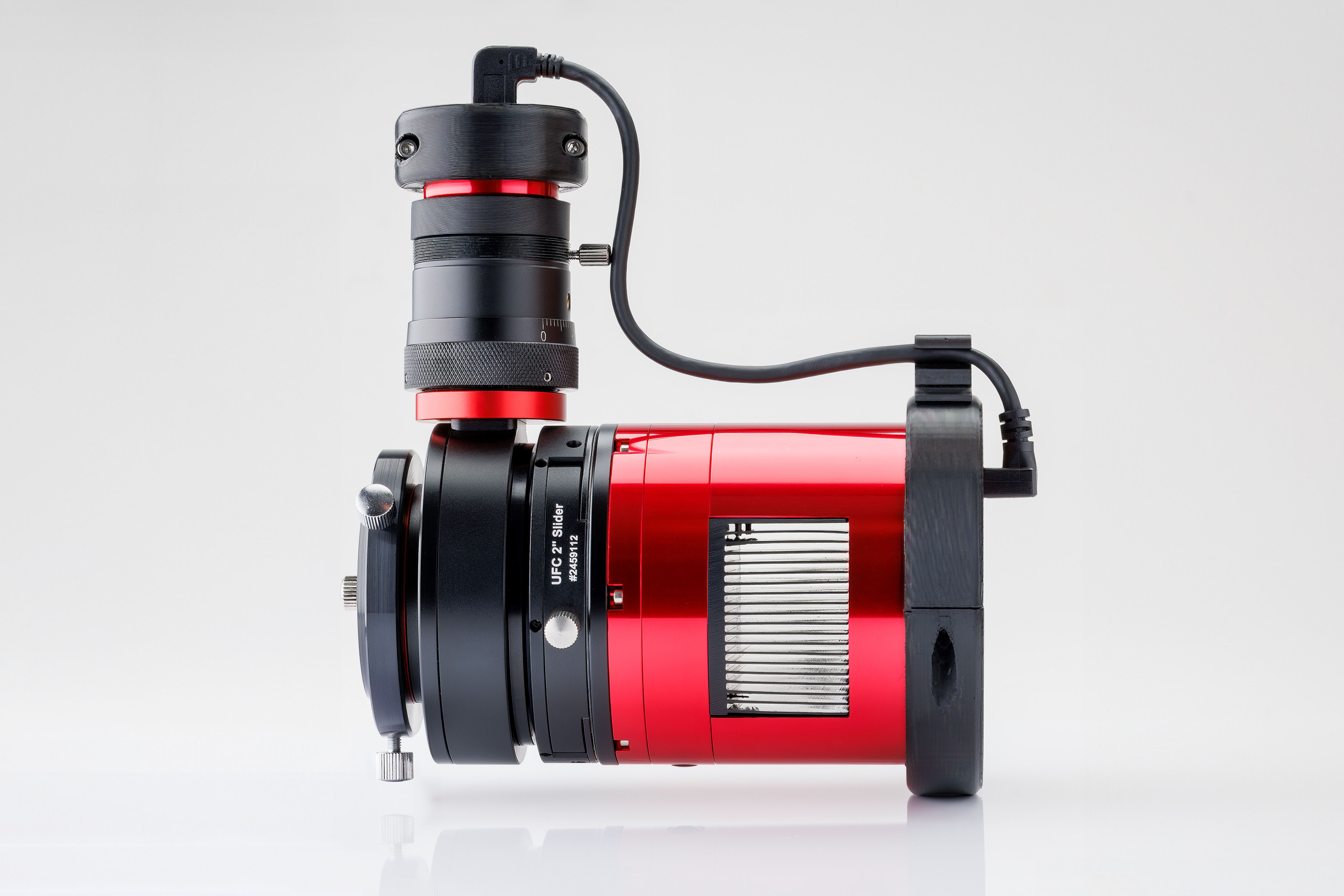Über den USB-Hub der Kamera lassen sich beispielsweise die Guidingkamera oder das Filterrad anschließen. Damit reduziert sich die Zahl der abgehenden Kabel deutlich. Von der Kamera führt am Ende nur noch ein einziges USB-Kabel zur Steuerungseinheit, anstatt zwei oder drei separater Leitungen. Das vereinfacht die Kabelführung erheblich, spart Gewicht und minimiert bewegliche Kabel im sensiblen Bereich des Systems.