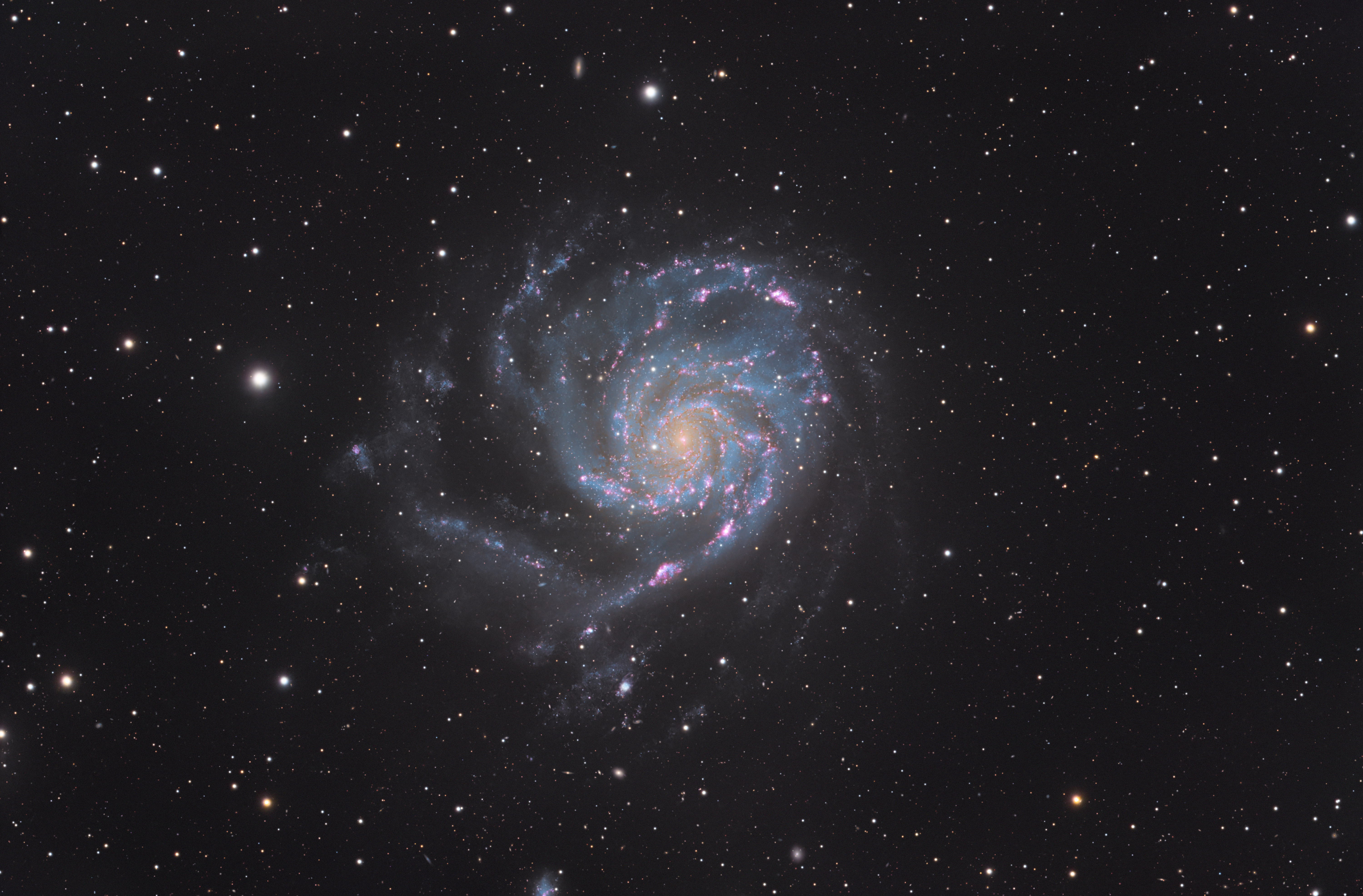 Messier 101 gehört zu den eindrucksvollsten Spiralgalaxien des lokalen Universums und zeichnet sich durch weit ausladende Spiralarme mit ausgeprägter Sternentstehung aus.