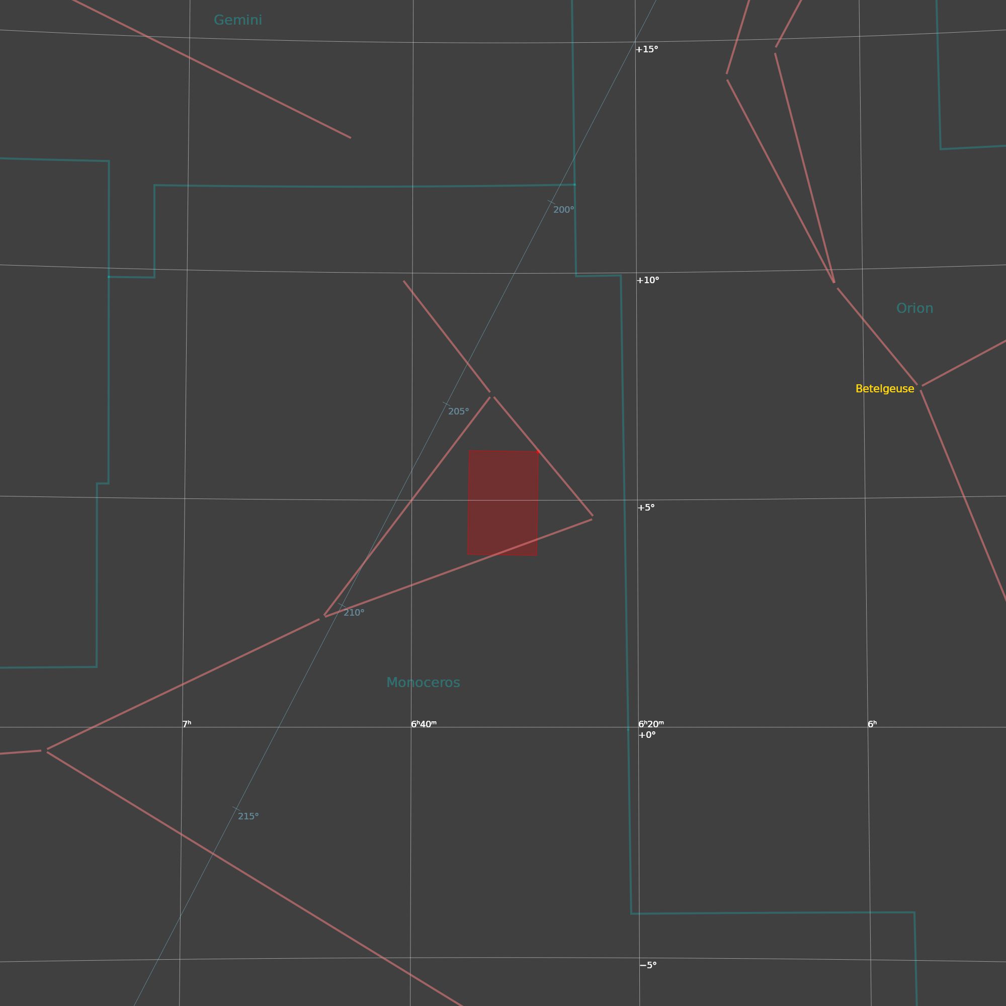 Der Rosettennebel liegt im Sternbild Einhorn nahe der Grenze zu den Zwillingen und gehört zur äußeren Region des Orion-Arms unserer Milchstraße. Mit einer Entfernung von rund 5.000 Lichtjahren ist er Teil eines größeren Komplexes aktiver Sternentstehung, zu dem auch weitere Emissionsnebel und junge Sternhaufen gehören.