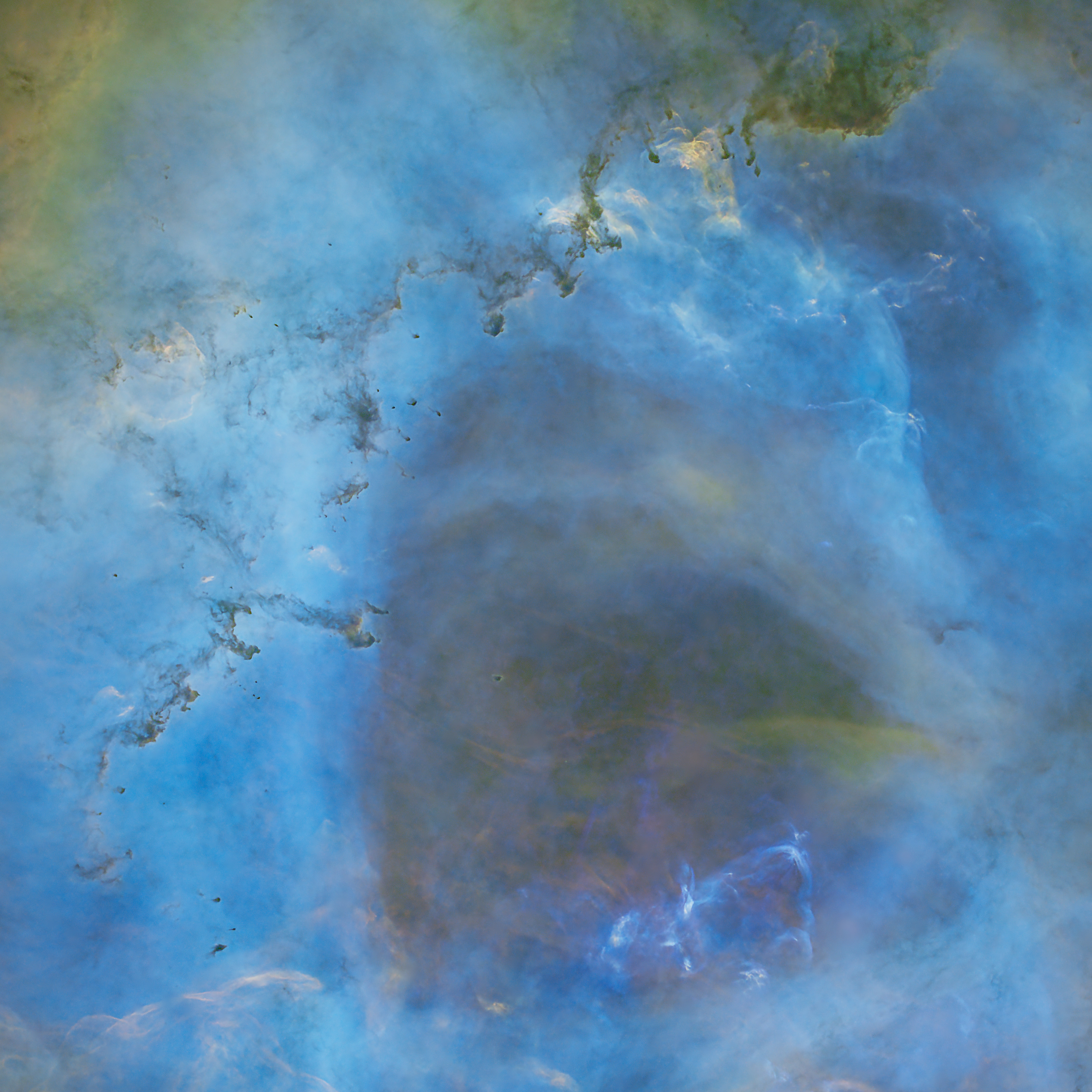 Die Aufnahme legt den Fokus auf genau diesen Prozess. Sichtbar werden Ionisationsfronten, filamentartige Strukturen und großräumige Gasbewegungen, die direkt auf den Einfluss der jungen Sterne zurückzuführen sind.