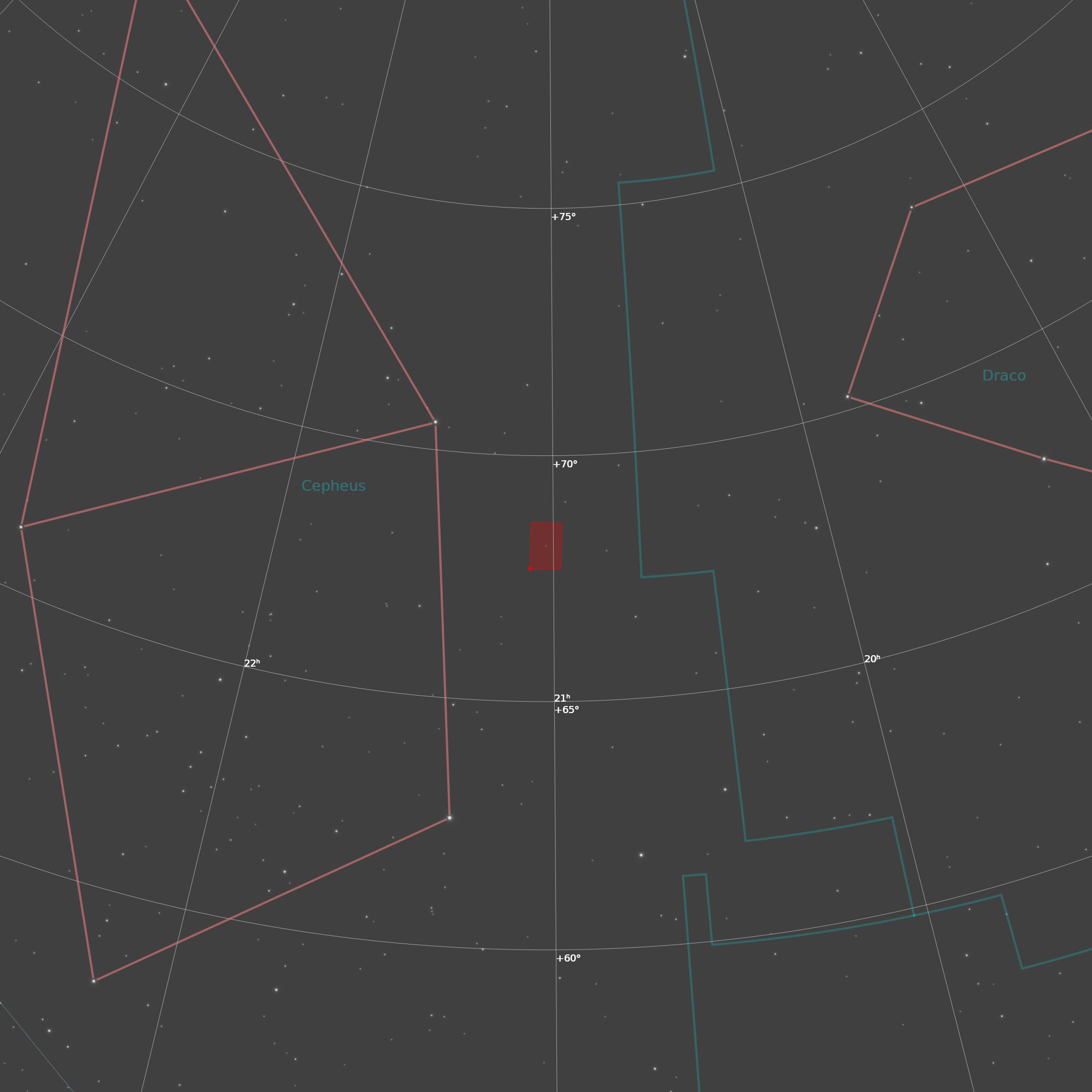 Der Irisnebel steht im nördlichen Sternbild Kepheus und ist von Mitteleuropa aus zirkumpolar sichtbar, das heißt er bleibt ganzjährig oberhalb des nordwärtigen Horizonts. Er liegt bei den Himmelskoordinaten Rektaszension ca. 21 h 01 m und Deklination etwa +68°, wodurch er relativ nahe am Himmelsnordpol steht und für Beobachter auf der Nordhalbkugel meist hoch am Himmel erscheint. Unter dunklem Landhimmel lässt sich der Reflexionsnebel besonders gut in den Monaten Juli bis Oktober beobachten.
